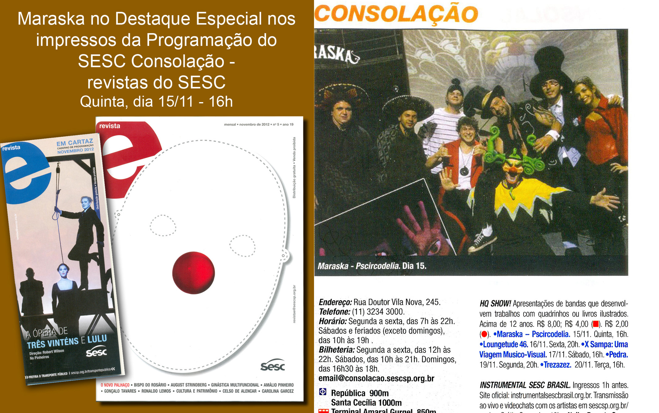 A Banda Multimídia MARASKA está em pleno processo de produção, coisas novas e inéditas, aguardem. E agendem novo show no SESC, novembro próximo. Em breve, mais informações. Por enquanto, fiquem com um vídeo da banda em um trecho da música Mente Urbana (vídeo postado pelo pessoal do Palco do Metro Paraíso) …