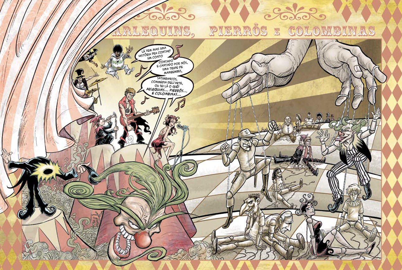 Metalinguagem assumida: Um autor de quadrinhos oculto (os olhos do leitor são seus olhos) começa a duvidar de sua sanidade quando seus quadrinhos – escritos a partir das histórias que um palhaço mambembe lhe conta desde criança – começam a invadir a sua realidade…
