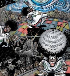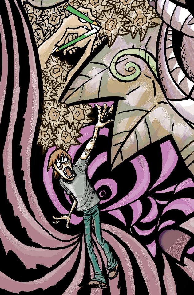 O cara só consegue “viajar” para os mundos loucos dentro do circo Pscircodelia “viajando” literalmente… Mas, quem sabe, ao ajudar a moça-Fada-Negra, ele aprenda algumas coisas novas que o tirem desse inferno…